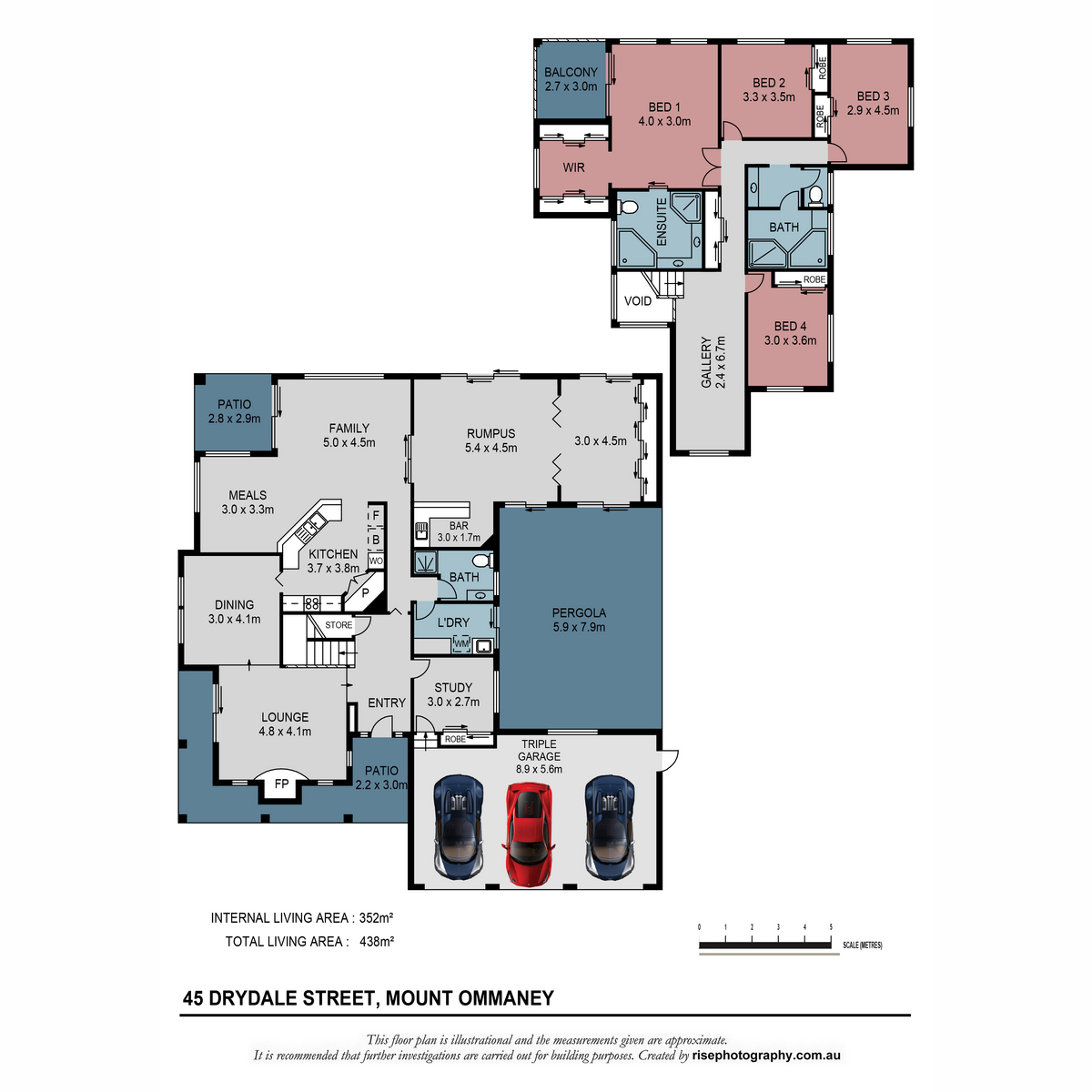 – 3 Car garaging with motorised doors and internal access